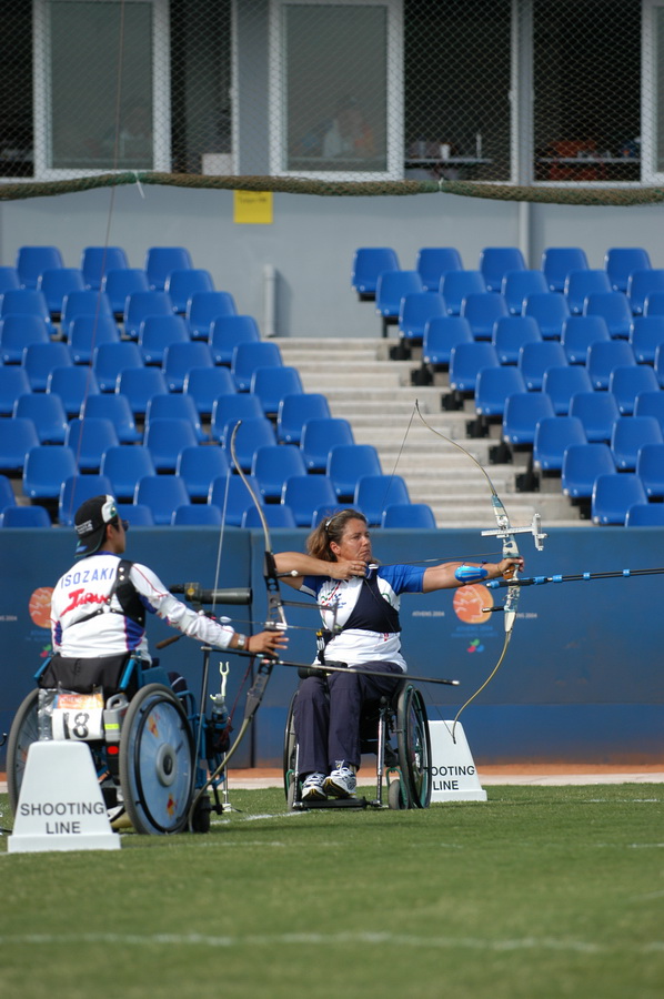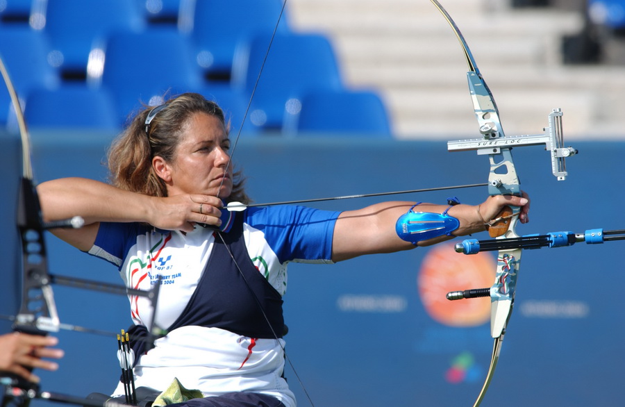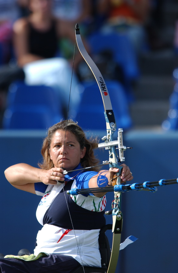 Atlanta ’96. Ho iniziato nell’86 a fare le prime gare. Nell’88 ho partecipato alla mia prima Paralimpiade a Seul, vincendo la medaglia di bronzo, e ricordo che sul podio, mentre aspettavo che mi premiassero, pensavo: «Se qui ho vinto la medaglia di bronzo, fra quattro anni a Barcellona voglio vincere la medaglia d’oro» e cosi è stato. Visti i risultati, la Nazionale Fitarco mi ha convocato per la prima volta ai raduni in previsione di Atlanta ’96 e da lì ho continuato appunto a prepararmi, ad allenarmi, a competere per riuscire a qualificarmi per Atlanta Olimpiadi e ce l’ho fatta. Infatti nel ’96 ho fatto prima le Olimpiadi, poi sono tornata a casa, ho cambiato la valigia, ho lavato e cambiato le magliette e sono ripartita per le Paralimpiadi di Atlanta. Inutile dire che è stata per me una grandissima soddisfazione, non ho vinto medaglie ad Atlanta Olimpiadi, però secondo me ho vinto il premio più importante, perché quando io ero sulla linea di tiro non esisteva più l’handicap, non esisteva più la mia carrozzina, ma esisteva solo l’arco, le frecce e il bersaglio. Io ero temuta e rispettata da tutte le atlete delle altre Nazioni, come io temevo e rispettavo loro […]. E quindi questo secondo me è il premio più importante che abbia vinto.